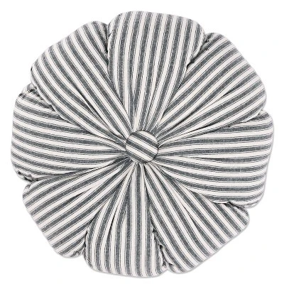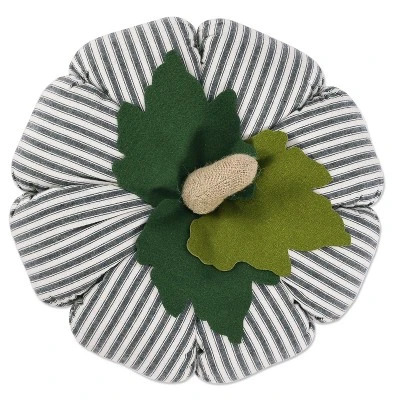 Love festive Halloween and Thanksgiving decorations but hate the mess of carving pumpkins? The Pillow Perfect Fall Indoor Ticking Stripe Natural Pumpkin 3-Dimensional Throw Pillow is the perfect way to decorate for Halloween or Thanksgiving without actually having to set foot in a pumpkin patch. This pumpkin-shaped pillow comes in a classic, fall-friendly gray & white ticking stripe. Each pumpkin has contrasting felt leaves and a burlap stem. Enjoy on your sofa, entry bench, or grab some mums and cornstalks to create your own fall scene on your front porch. Plush recycled polyester fill will hold the pumpkin’s shape so you can enjoy them year after year. Spot clean as needed using mild detergent and let air dry.