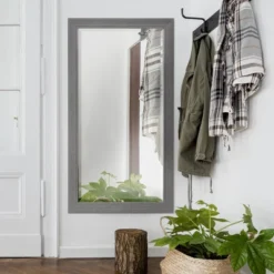 This minimalist gray woodgrain-textured beveled mirror is the perfect finishing touch to any space. Instantly brighten up any room, hall, or corridor with this expertly crafted mirror and give yourself, your family, and your guests a place to admire their reflection.