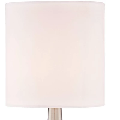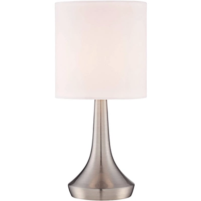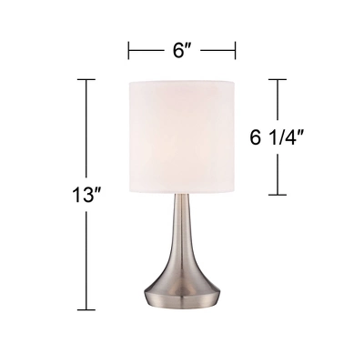 Sleek with a modern profile, this modern table lamp set features a slim tapered shape. Each of the two lamps is crafted in metal with drum shades on top. Touch functionality makes these easy to use and perfect for a bedside or next to a favorite reading chair. Just touch the bases anywhere to turn them on and off. A modern look from the 360 Lighting brand.