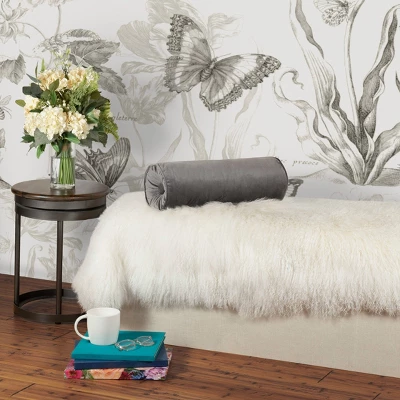 7″x18″ Luxe Velvet Neckroll Pillow With Piping And Button – Edie@Home