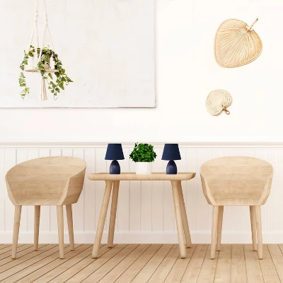 A petite table lamp set, each made primarily of ceramic with its oblong base shape sits beneath a matching colored tapered fabric shade for an overall effortlessly styled lamp suited for both your décor and lighting needs. A number of color options are available in this style, to compliment your decor just right.