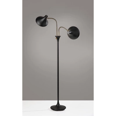 The Ascot Floor Lamp mixes style and functionality in the best way. Black & antique brass metal finishes and two abstract shaped shades work together to create a classic mid-century modern silhouette. Two gooseneck arms allow for the light to be directed exactly where it is needed. A simple rotary switch has 4 settings: left light on, right light on, both lights on, off.
