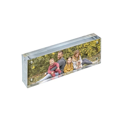 The Perfect Gift: Looking for something classy and special, give the perfect gift by inserting a family photos, award certificates, concert tickets, gift cards, special poems, or graphics. These Acrylic frames will surely delight any recipient during the holiday season, smiles all around for everyone! You will surely impress with these elegant photo block frames. These sleek and modern Acrylic Block Frames gives your photo or graphic an upscale look. Thick and Sturdy: each side of the acrylic blocks are ¾ thick making the total thickness of the block frame 1.5 thick. The clear polished edges give these magnetic block frames a high end finish with a touch of fancy. The crystal clear high quality acrylic photo holder has 4 magnets on each corner to hold the acrylic together. Your graphic or picture fits securely inside without moving or sliding. Easy to use, simply pull apart the blocks and insert picture or graphic and then close, your photo will be held securely and also easy to switch out when needed. The photo holders can be used vertically or horizontally and sits on its own on a tabletop, shelf, counter, or mantel. The transparent acrylic compliments any décor. The solid acrylic block frames can be used in boutiques, museums, trade shows, hotel lobbies, restaurants, retail stores, schools, at work or at home. These chic picture holders will look great on any desk, mantel, or retail counter. Give the perfect gift by inserting a family photo, award certificate, concert ticket, business card, gift card, special poem, or bridesmaid gift. Great for weddings or special events for table numbers or centerpieces. Other uses include: name plate, photo frame, branding or advertising. Sold in multiples of 1.Sold in Multiples of: 1Material: AcrylicOrientation: Landscape/PortraitMeasurement: 3 x 11Material Thickness: Two blocks of acrylic 0.75 thickColor: Clear