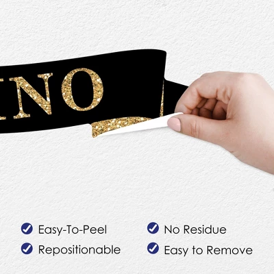 Big Dot of Happiness Las Vegas Wall Decals includes 1 sheet of 20 assorted vinyl wall art stickers that you can arrange to add a special touch to your home decor. Wall Decal sheet measures 50” wide by 16.5” tall. Pieces range in size from 15 x 8.5” to 3 x 3”. Effortless Decor: The Casino Party wall stickers are an easy solution for bringing in some added charm to your space within minutes! You can use the wall decals for rooms, impressive photo backdrops, or as easy decor at your Bachelor or Bachelorette Party. Easy to Use: Las Vegas vinyl decals are easy-to-peel and repositionable. Wall art stickers will adhere to various surfaces including painted walls, plastic, wood, glass, and metal. To use, make sure your surface is clean and dry. Slowly peel the sticker from the paper to avoid tearing and smooth over with your hand. They are also easy to remove, leaving no residue. High-Quality Supply: Las Vegas wall stickers come with a quality matte finish and vibrant colors. They are printed on water-resistant professional quality material and will arrive on one full sheet rolled. Made In The USA: Casino Party Wall Decals are designed and manufactured at our Wisconsin facility using materials that are Made in the USA. Las Vegas Vinyl Stickers uses a No-Mess Glitter Print: Our vinyl stickers are designed with a printed image of glitter, eliminating glitter flake while maximizing bling effect!