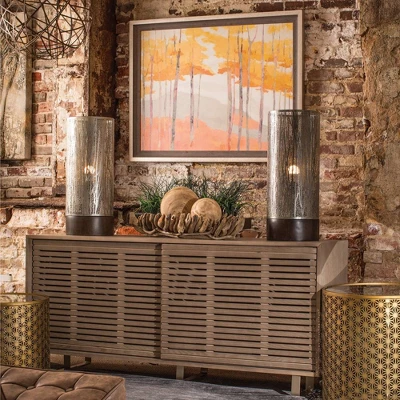 This stylish metal and poly uplight is a modern look unmatched by similar fixture. it’s framed around a metal and poly cylinder that directs light upward and creates powerful ambiance. This piece exemplifies superior product design and great styling at an unbeatable price. It will pair well with nautical and eccentric styling and is sure to be a conversation piece. Regardless if you put it in the bedroom or family room, this lamp stands out. Suitable for residential use in a dry location.