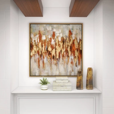 This wall art exude natural beauty and sophistication in both color and composition. Showcase your personality and turn your walls into an art gallery with this impressive wall art. This framed canvas art is an excellent addition to traditional and modern style homes. This item ships in 1 carton. The frame is made from Chinese fir and polystone with a light gold finish. Can be hung vertically using the sawtooths on the back; nails and screws not included. Suitable for indoor use only. This item ships fully assembled in one piece. This is a single gold colored canvas wall art. Traditional style.