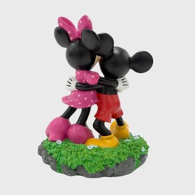 - Adorable hugging statue feature Mickey and Minnie Mouse.