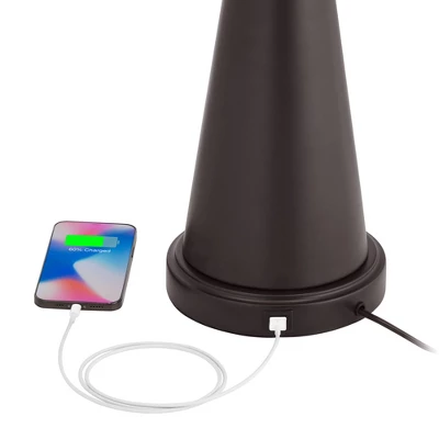 Franklin Iron Works Craig Rustic Farmhouse Table Lamps Set Of 2 With Round Risers 24 1/2″ High Bronze With USB Charging Port Natural Shade For Desk