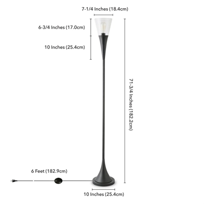 A handmade seeded glass shade creates a warm glow in your living room, bedroom, office, or dining room and brings a modern farmhouse appeal to your home. This floor lamp is crafted from steel and is a great addition to any home looking for an industrial-inspired illumination. The black metallic base adds a hint of industrial style making this a versatile floor lamp. A perfect choice next to your favorite reading chair or sofa, this floor lamp will easily become the focal point in any room such as the living room, bedroom, or home office.Features : The blackened bronze tones keep this piece understated but refined.It’s paired with a hand-made seeded glass shade.The shade is hand made from seeded glass. Each shade is slightly unique due to the nature of seeded glass.Bulb not includedCompatible with smart light bulbs such as Philips Hue, LIFX, IOTTY, TP-Link, Texsens, Flux, Samsung SmartThings, WiZ, and C by GE. Bulb is not included.Specifications : Product Weight : 9.36 lbsFrame Material : Glass