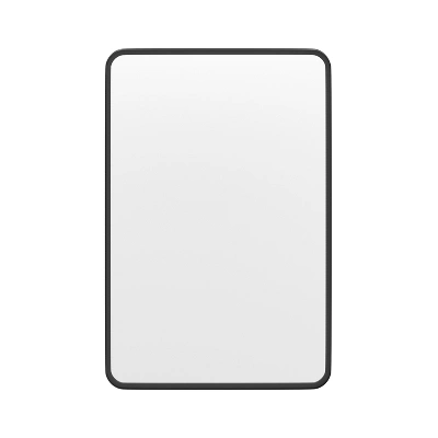 Make a statement accenting any wall in your home with this luxurious round mirror featuring a sleek black metal frame with rounded corners. This accent mirror showcases a framed design that helps add both a rustic and contemporary touch to your space. Whether you hang this framed mirror vertically or horizontally in your bathroom, living room or above your fireplace mantel, you’ll love the warm and welcoming style it brings.
