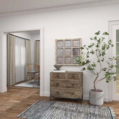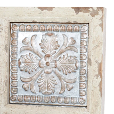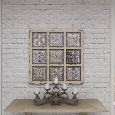 - โขAntique designs wall decor features muted colors of white and gray with a distressed finish