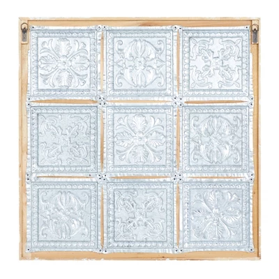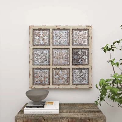 - โขThis wall plaque features elaborate rustic style flowers etched on the 9 square wood panels