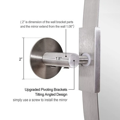 Start the day off with a mirror that matches your style. Enhance the modernity of your household with the Moon Mirror Modern Oval Wall Pivot Steel Bathroom Mounted Mirror.This oval-shaped mirror is sure to bring a sophisticated accent to any living area. Quality is in the details, from a refined brushed silver finish to precise linework. Enjoy the elegant design with the gap between the frame and glass. A broad oval shape offers increased vertical visibility so you can get an unobscured look at your reflection before the day begins. This mirror is suspended with adjustable rotating clamps for you to tilt and pivot the mirror to view yourself from multiple angles. This modern hanging mirror is rated for use in the bathroom, fireplace, entryway, living room, and bedrooms.For all-in-1 convenience, all mounting hardware for installation is included. Perfect for refining you or your household’s aesthetic, the Moon Mirror Modern Oval Wall Pivot Steel Bathroom Mounted Mirror is the high-end mirror you need to reinvent your daily routine.