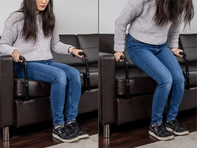 MPM Adjustable Couch Lift Assist provide a safe and stable assistance for you to rise from chairs, sofas and recliners with greater ease. The dual support handles create a stable foundation for pushing up to a standing position, minimizing hazardous falls of risk. It is easy to use. Simply fit snugly around the base of secure cushions or beneath loose cushions. The standing aid can be used with any cushioned seat, including plush sofas, recliners and upholstered chairs. It is perfect for the seniors, those in rehab, or anyone who need mobility assistance.