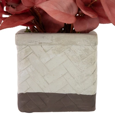 Northlight Real Touch™ Brick Red Artificial Peperomia Plant In Square Lattice Designed Pot – 7 “