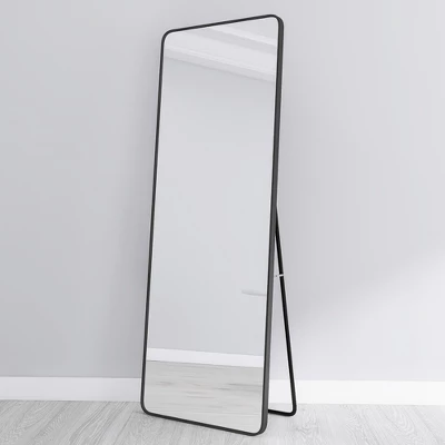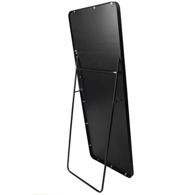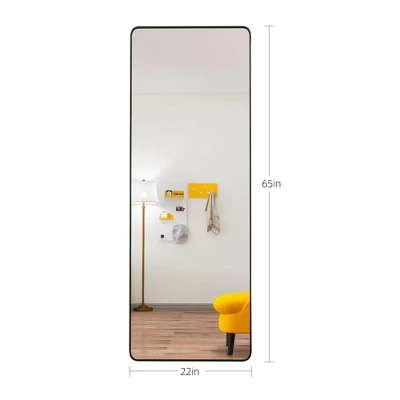 This full-length mirror is an eye-catching addition to any modern home decor. Its sleek design and versatility make it perfect for use in the bedroom, living room, dorm room, or corridor. The mirror can be simply leaned against the wall, adding a stylish touch to any space.Dressing up before leaving home becomes a breeze with the help of this elegant full-length mirror. Its tall height allows for a comprehensive view, ensuring you can check your look from head to toe before starting your day.Set up a dedicated space to check your appearance with this freestanding mirror, which is an excellent solution for filling an empty corner. The mirror’s metal frame features a streamlined silhouette and a solid finish, making it a perfect match for contemporary spaces and a variety of color schemes.The adjustable rear easel provides the flexibility to find the perfect viewing angle for today’s outfit. With its overall measurements of 63 in. H x 22 in. W x 1.1′ D, this mirror offers ample size and presence.