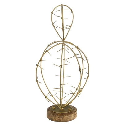 This prickly pear will add a stylish addition to any home looking for a permanent plant. Features a strong wooden base with a gold finish on wire mended into the beautiful shape of a small cactus. Easily style on the desired tabletop surface and decorate with surrounding accent decor for the best look.