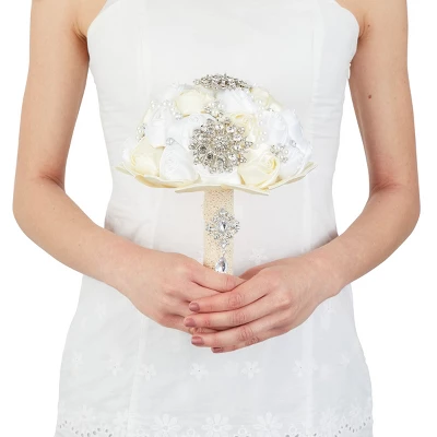 - What’s Included: Includes 1 ivory and white rose bouquet with rhinestone brooches; bouquet diameter: 8.5 inches; total height: 11 inches