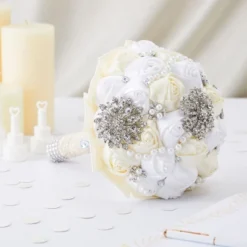 - Wedding Bouquet: Our artificial wedding bouquet features sparkling brooches that will instantly add elegance and romance to your wedding decorations, vow renewal ceremony, or Quinceanera