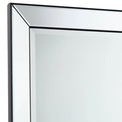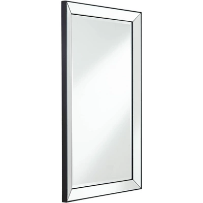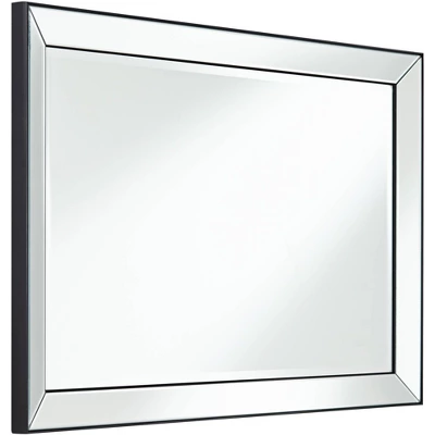 A beautiful design by Uttermost, this elegantly understated modern wall mirror features a classic beveled mirror center for a timeless flair. The polystyrene edge frame also offers a matte black finish lends definition and contrast. Across the back is a D-ring hanging hardware, allowing you to mount this elegant mirror both vertically and horizontally to suit your space perfectly.